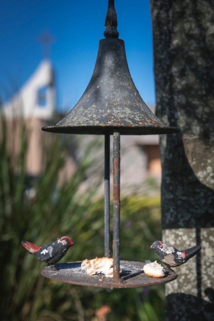 Una tienda invernadero de chatarra de hierro, unos containers intervenidos con flora y fauna, muebles de exterior armados con piezas de ferrocarril y un jardín y huerta de cuentos.