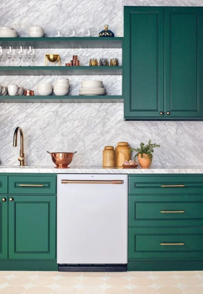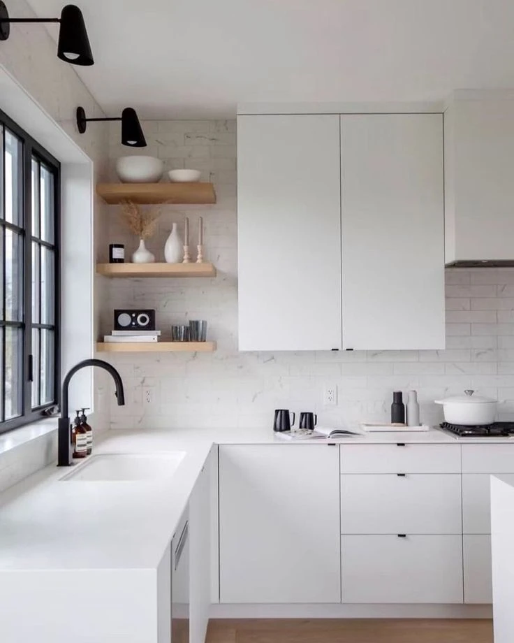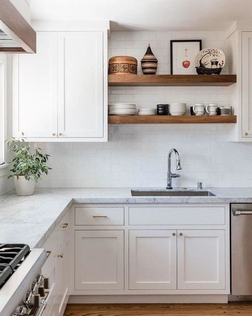 Pero si la cocina es chica, ¡bienvenidos son los estantes abiertos! Suman espacio de almacenaje, pero también son un punto focal decorativo.