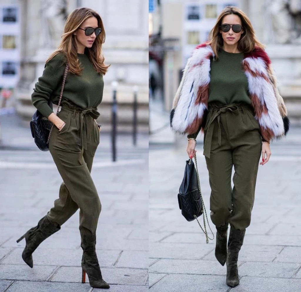 Este invierno, los pantalones siguen vigentes y se adaptan a las reglas de la nueva temporada: se llevan pinzados, con cintura alta y en color verde oscuro.