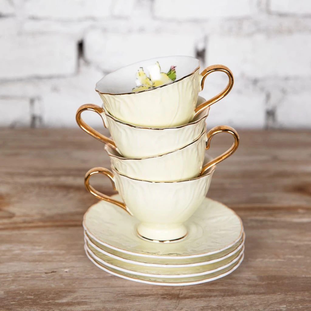 Juego de tazas Lilium, set X 6 ($ 4.038, Compañía Nativa, @compania_nativa).Cacerola La Cuisine (de 26 cm x21cm), apto fuego; jarro mug ($ 3.410 y $ 605, Villatte La Maison, @villattedeco)