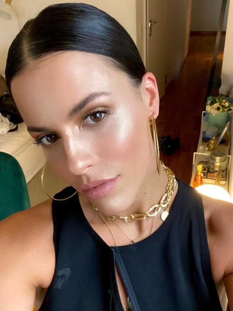 Lo mas importante de este maquillaje es que la piel quede muy iluminada e hidratada, para ello se trabajó un iluminador en tonos bronce y se aplicó sobre los pómulos, centro de nariz y cien.
