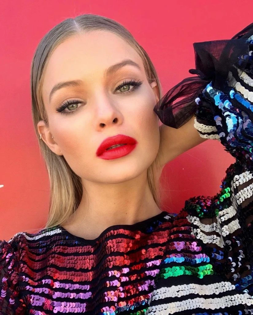 Este make up resalta la boca en primer plano. Se trabajaron los labios en un tono rojo cremoso, primero delineándolos para darle forma y luego se los rellenó con el labial.