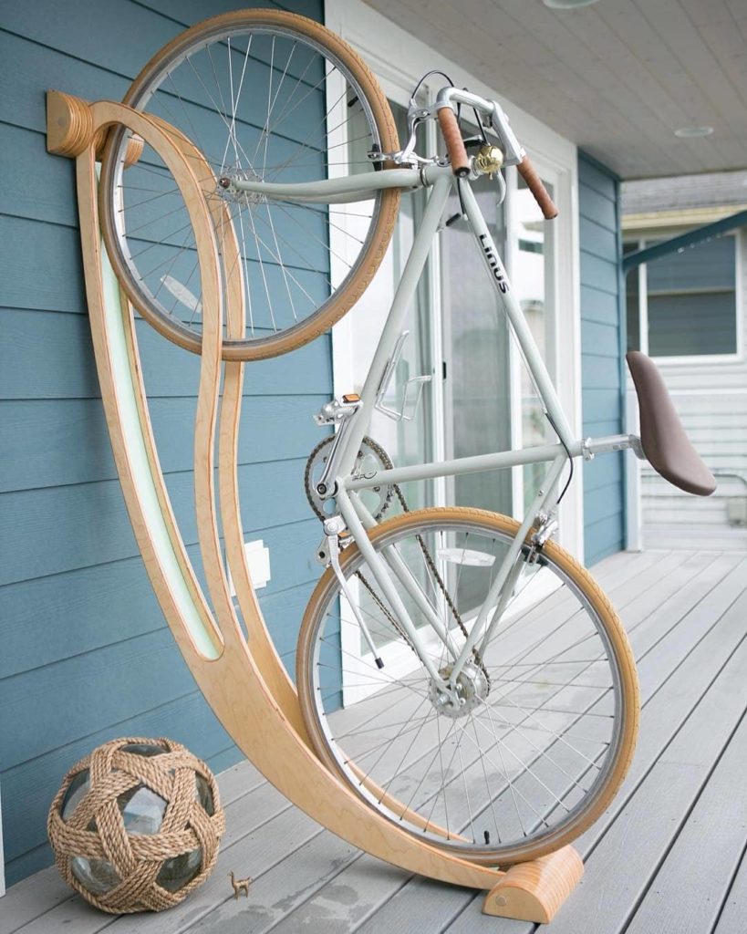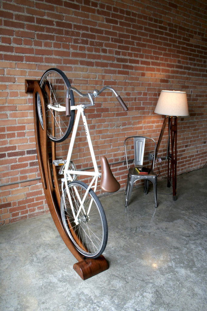 El sueco Alex Yoo Gävle se centró en un diseño minimalista y muy atractivo. Utilizó apenas dos piezas que combinan madera y metal, y demostró que pueden ser suficientes para lograr un buen diseño y funcional para guardar la bici.