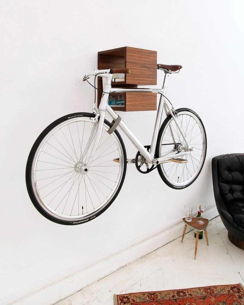 Arriba, bien arriba, que no reste lugar en ningún espacio y que resuelva una necesidad imperiosa: ¡guardar la bici en un ambiente chico! Esa es la propuesta de diseño de Mikili, un estudio con sede en Berlín cuyos creativos se focalizaron en un portabici simple pero muy práctico.