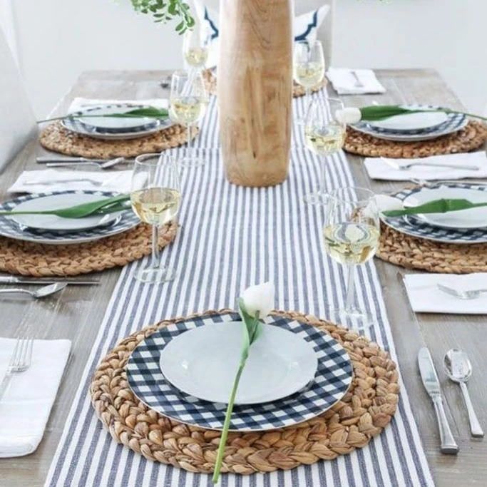 O al contrario, si la referencia es un mantel de color o estampado intenso, todo lo que va arriba de él tiene que ser más suave y ligero.