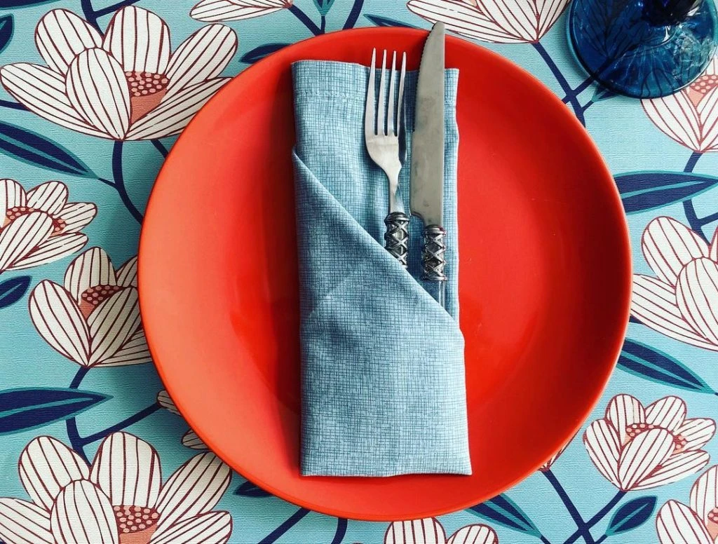 Si el mantel es de una tonalidad suave, sobre él tiene que haber accesorios y objetos de colores potentes e intensos.