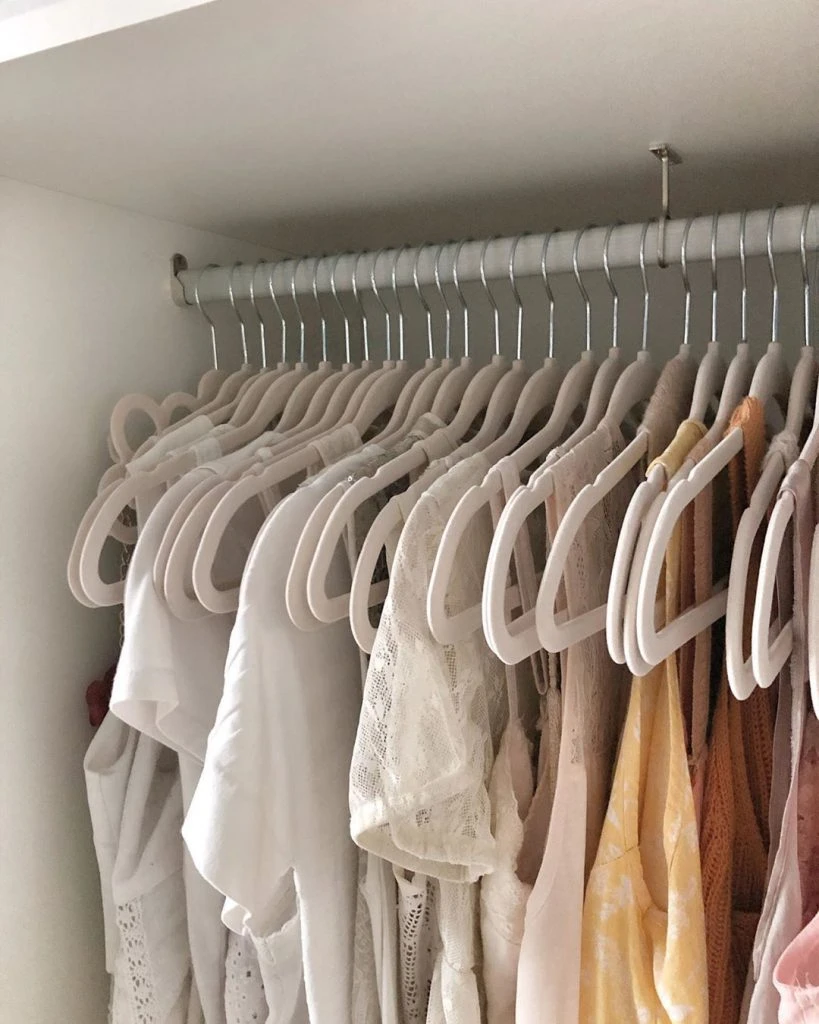 - Orden: volvemos a guardar aquello que quedo después del descarte de una forma eficiente. El método archivo es ideal para aplicar en esta etapa; implica guardar todos nuestros objetos de forma vertical, en lugar de horizontal. También se lo conoce como estilo fichero, ya que simulamos la forma en que se guardan las carpetas archivadas pero aplicado a nuestras prendas y demás objetos. Nos podemos ayudar con contenedores o directamente aplicarlo en cajones y estantes.