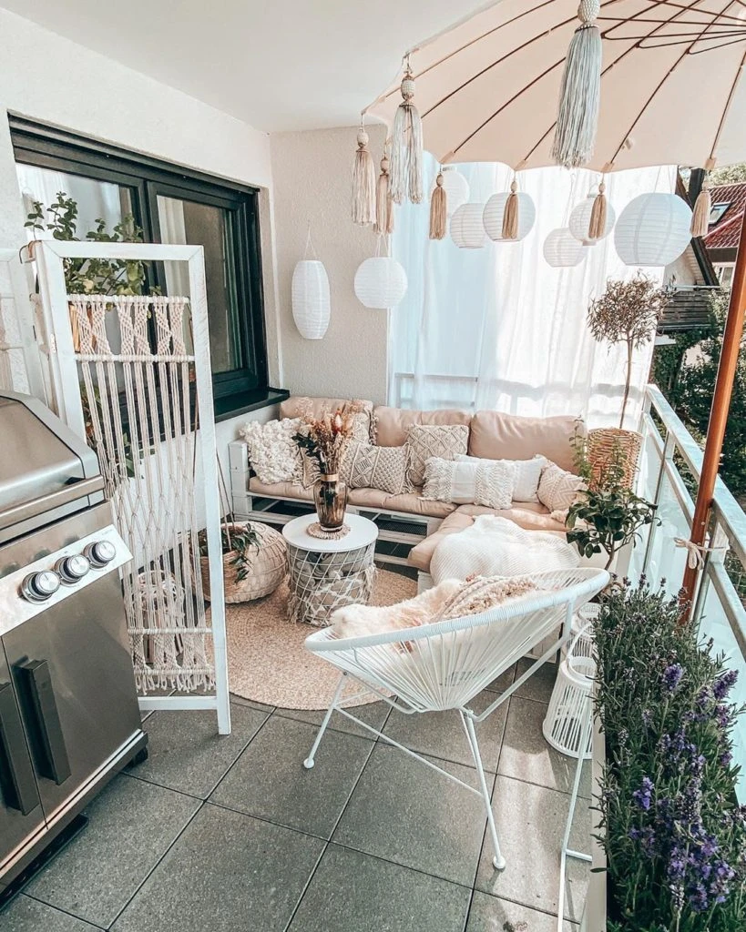 Animate a tener mantas de lana gorda a mano, a sillones con fundas de lona en tonos naturales (porque al fin y al cabo estamos en el exterior) y creá tus propio oasis con telas de algodón para resguardarte del sol y darle mayor intimidad el rincón.