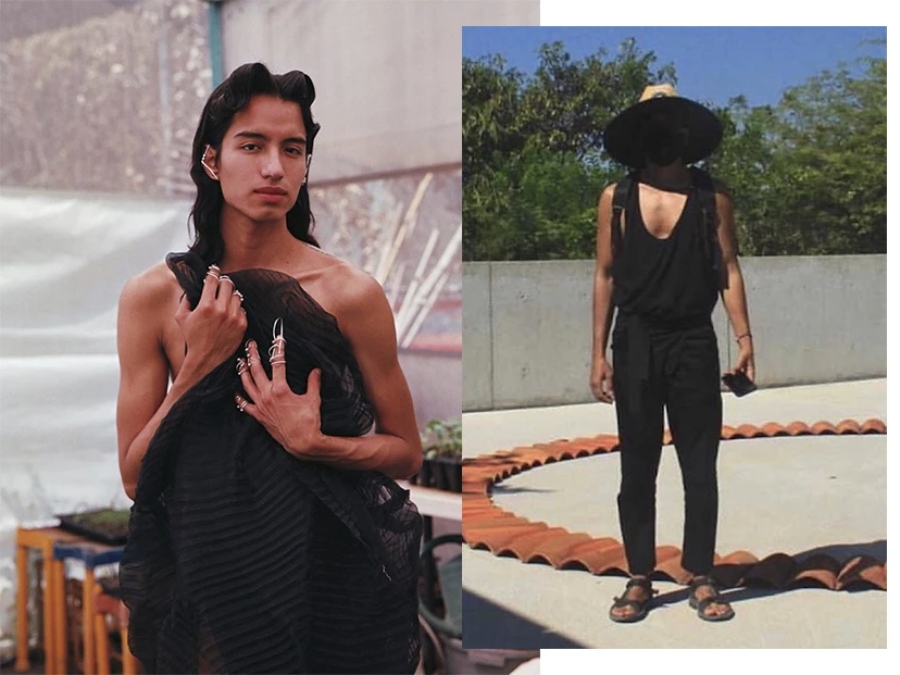 6- Guillermo Jester es un diseñador que trabaja con la identidad cultural de México, convencido de que la moda es un agente de cambio para romper con los estereotipos sociales y de género. Su estética es atemporal y minimalista, realiza una colección anual desde 2016, con lo que, además, busca fomentar un consumo responsable. “‘El diseño genderless va más allá de hacer únicamente prendas neutrales, sino de poder fluir entre estéticas más femeninas o masculinas sin importar el género, para lograr expresar nuestra individualidad”, declara el diseñador.