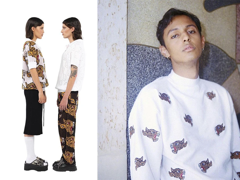 4- La diseñadora colombiana Laura Acevedo Trillos está detrás de la marca Papel de Punto, desde el 2012 se ha convertido en una ávida defensora de los prints estridentes, como por ejemplo jaguares y estampados tropicales, que a su vez logran definirse por las contradicciones con lo minimalista y las líneas depuradas de sus piezas. “Creemos que el futuro de la moda es genderless, que si se desdibujan los límites del género se puede estar más cerca de quien se quiere ser, que los individuos pueden encontrarse a sí mismos y experimentar sin ningún juicio de valor”, declara la diseñadora.