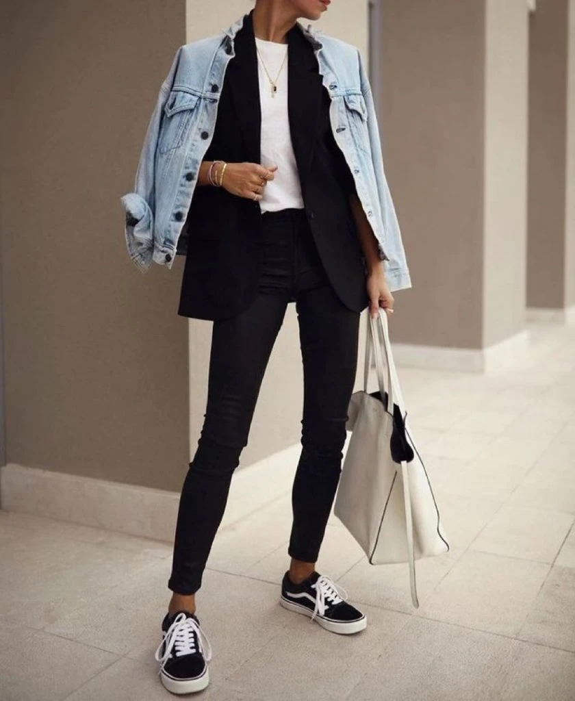 - Si queremos usar zapatillas por comodidad o para estar a la moda, que nada nos limite. Si usamos pantalones con zapatillas lo ideal es que sean rectos si tenemos una altura media. Si superamos el metro setenta podemos usar más modelos de pantalón con zapatillas, el truco es que las zapatillas sean del mismo color o parecido al jean, así no acortamos tanto las piernas.