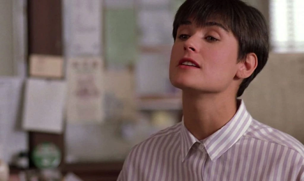 El dato curioso es que en realidad los productores habían elegido a Demi Moore por su larga cabellera morena. Su corte casi al ras los tomó por sorpresa en el rodaje.
