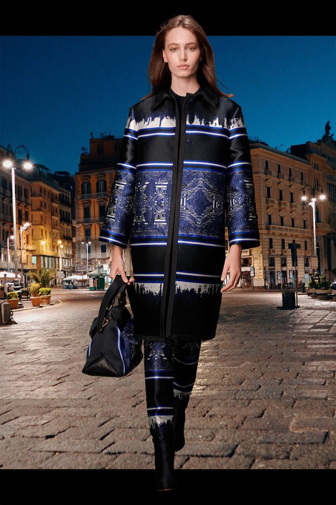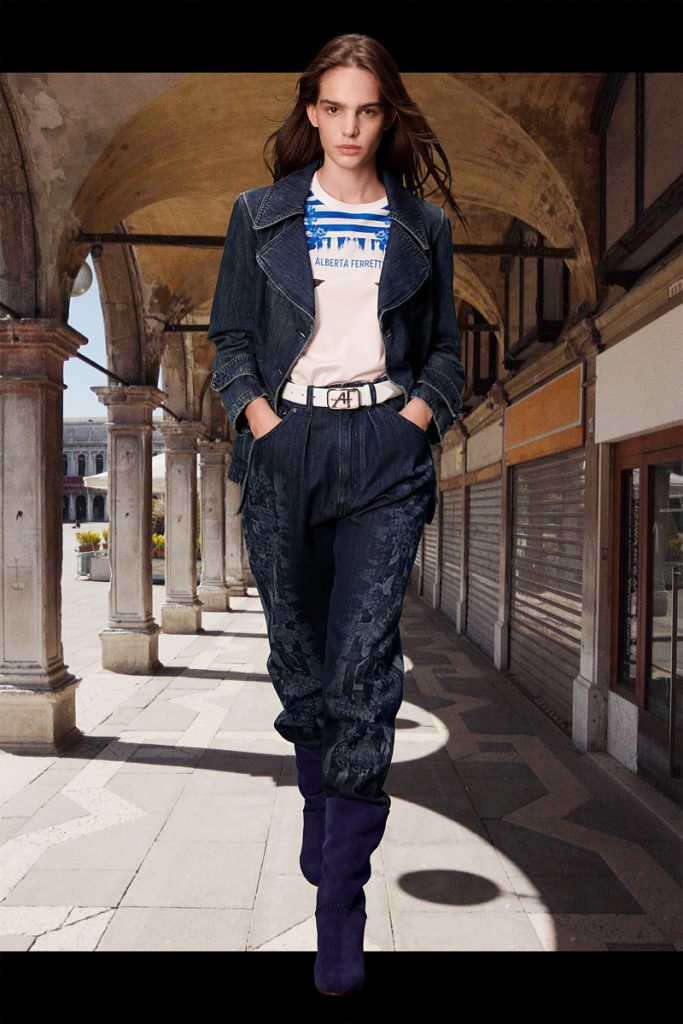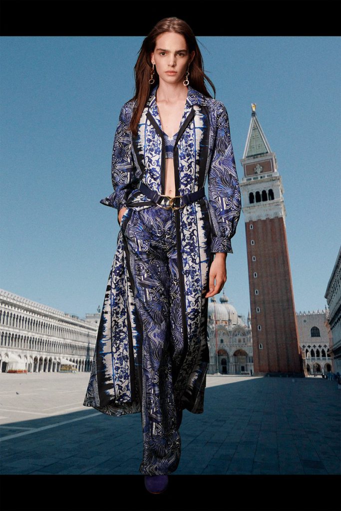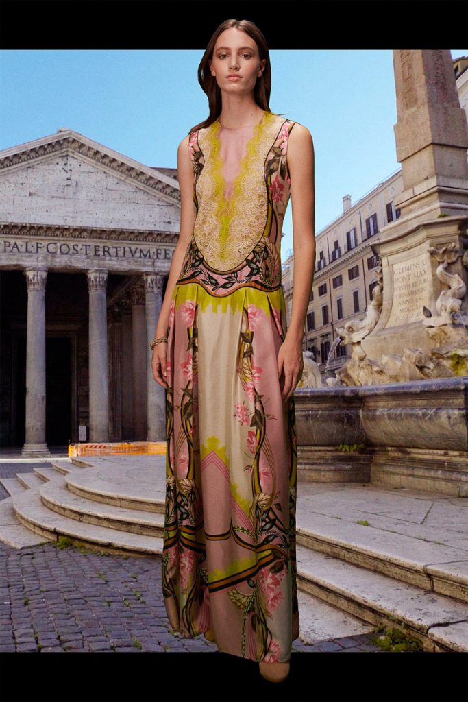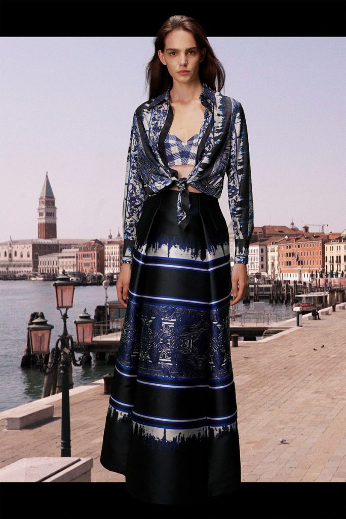 La diseñadora italiana creó una colección de espíritu optimista, con prendas de día y para uso cotidiano. El ADN clásico de la etiqueta se impregna de la energía del naranja, el azul y el rosa, en blusas de satén, vestidos de gasa, pantalones y trajes. Y de noche, vestidos largos y abrigos con flecos de rafia de seda, a puro glamour.