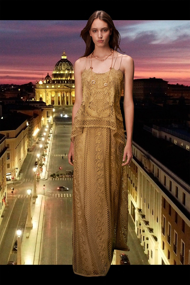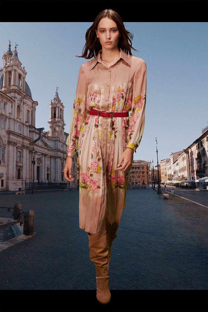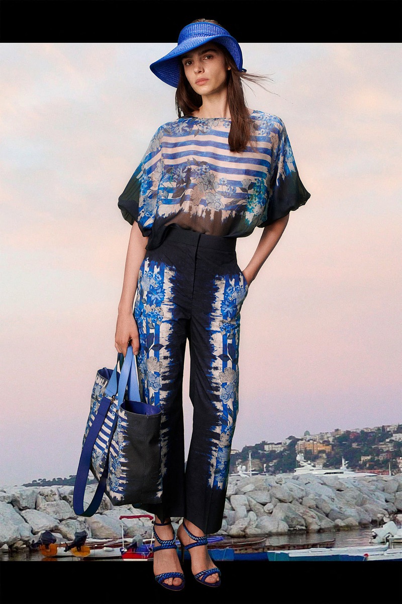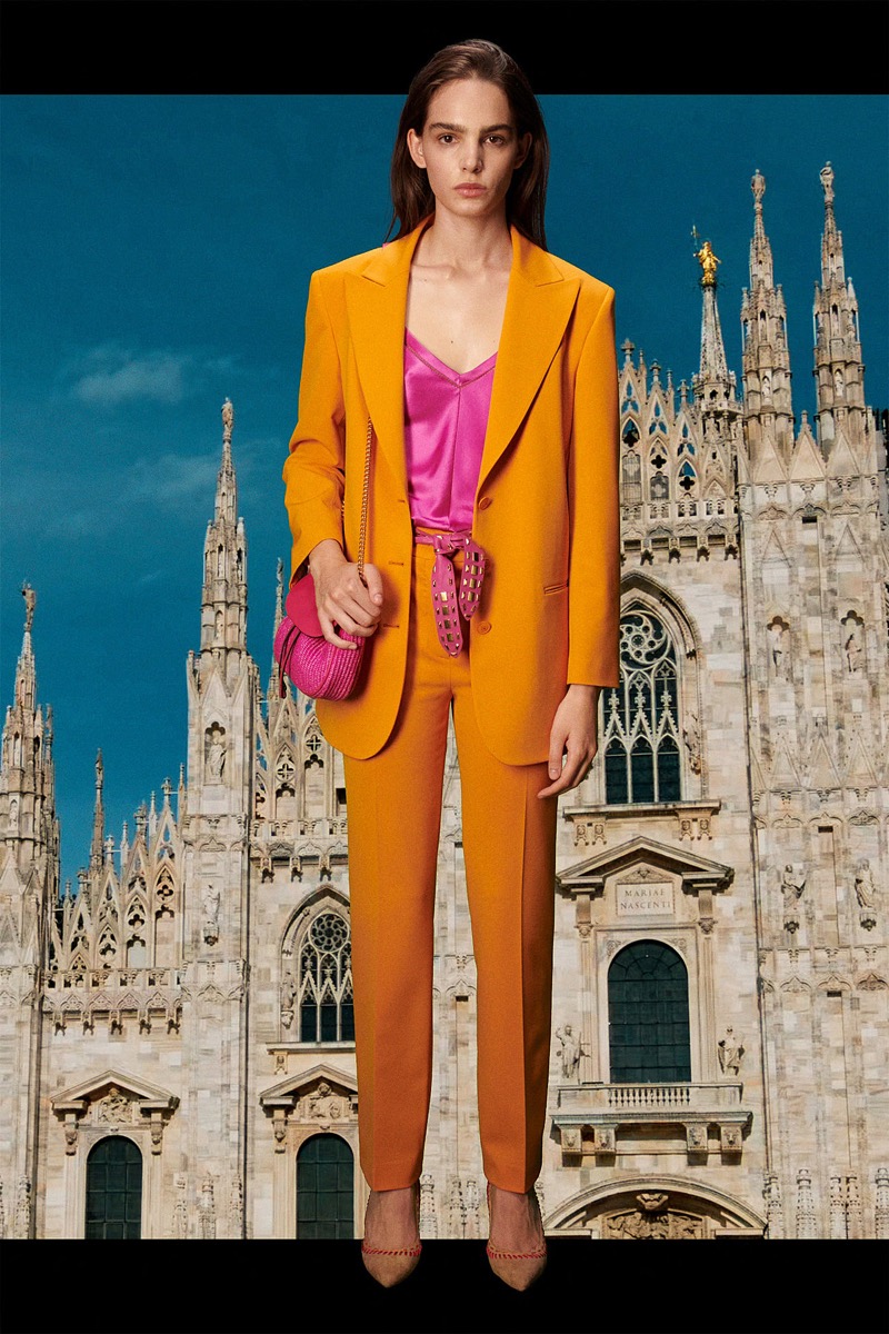 La diseñadora italiana creó una colección de espíritu optimista, con prendas de día y para uso cotidiano. El ADN clásico de la etiqueta se impregna de la energía del naranja, el azul y el rosa, en blusas de satén, vestidos de gasa, pantalones y trajes. Y de noche, vestidos largos y abrigos con flecos de rafia de seda, a puro glamour.