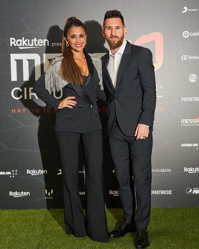 La rosarina vistió un esmoquin, el recurso de moda que últimamente las celebrities llevaron a las red carpets. El saco tenía un detalle único que le daba un estilo torero: flecos largos de strass. Estaban bordados sobre las hombreras. Un diseño de Elizabetta Franchi.