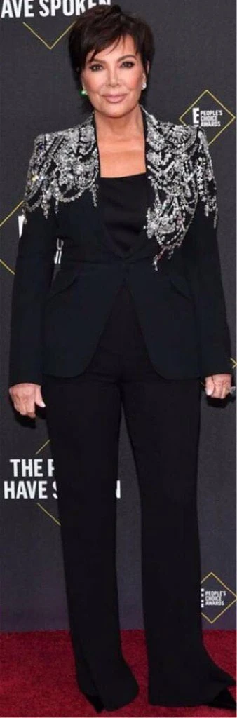 Kris Jenner apareció en la ceremonia de los E! People´s Choice Awards con un traje de Alexander McQueen. Se trató de un saco joya tipo smoking con cristales aplicados que combinó con top al tono y pantalón ancho.