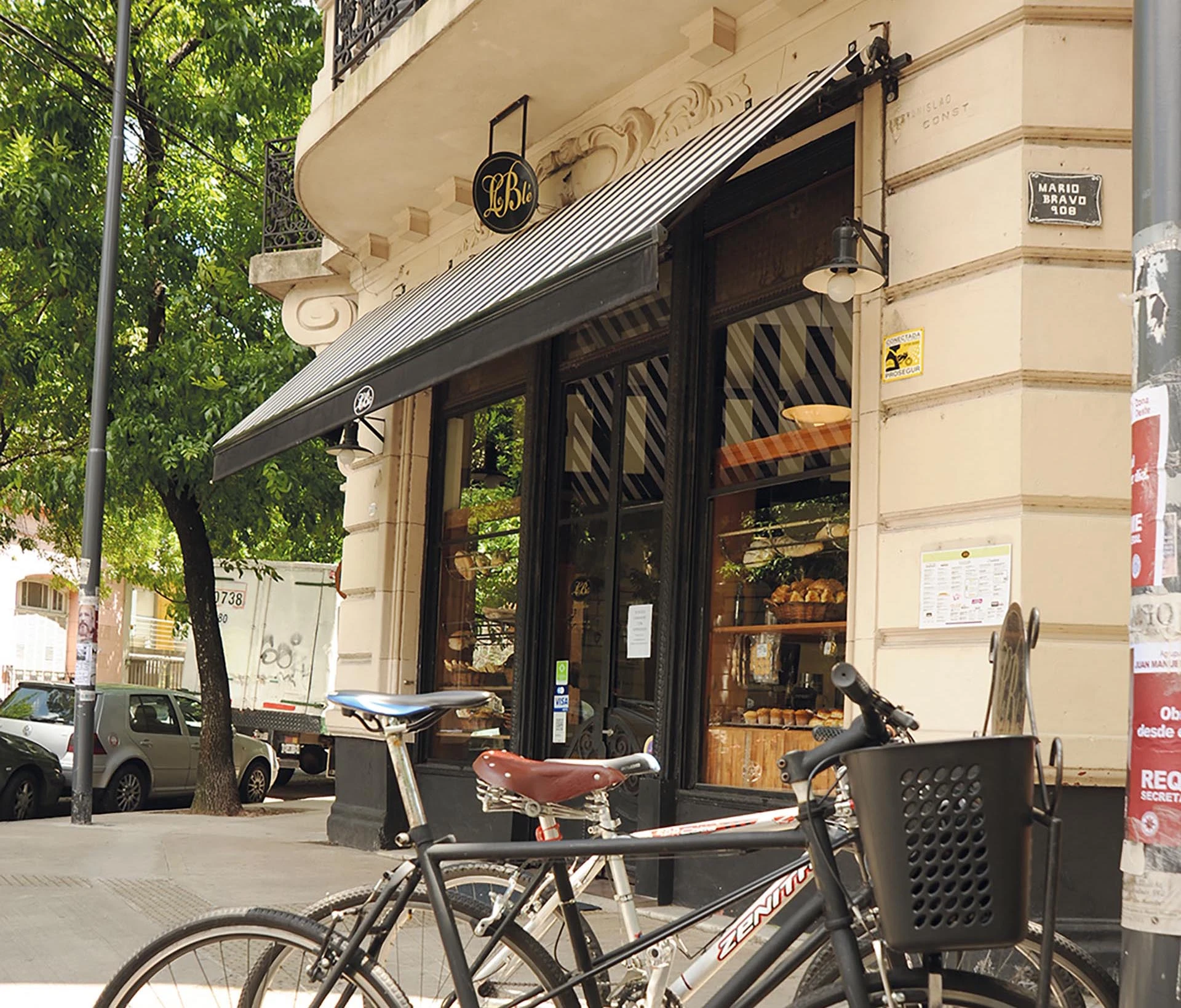 Hay para todos los gustos. En Le Blé podés iniciar el día con un desayuno "de campeones". Para ir en bicicleta y llevarte unas cremonas, hojaldres o medialunas, o bien relajar con un café con leche XL más tostadas belgas, canastitas dulces que incluyan medialunas, muffins o pain et chocolat. Podés optar por saborear alguna de las delicatessen al aire libre o puertas adentro. Si seguís de largo hasta el mediodía, da para tentarse con sus ensaladas, croque-monsieur o tablas de quesos y fiambres.
