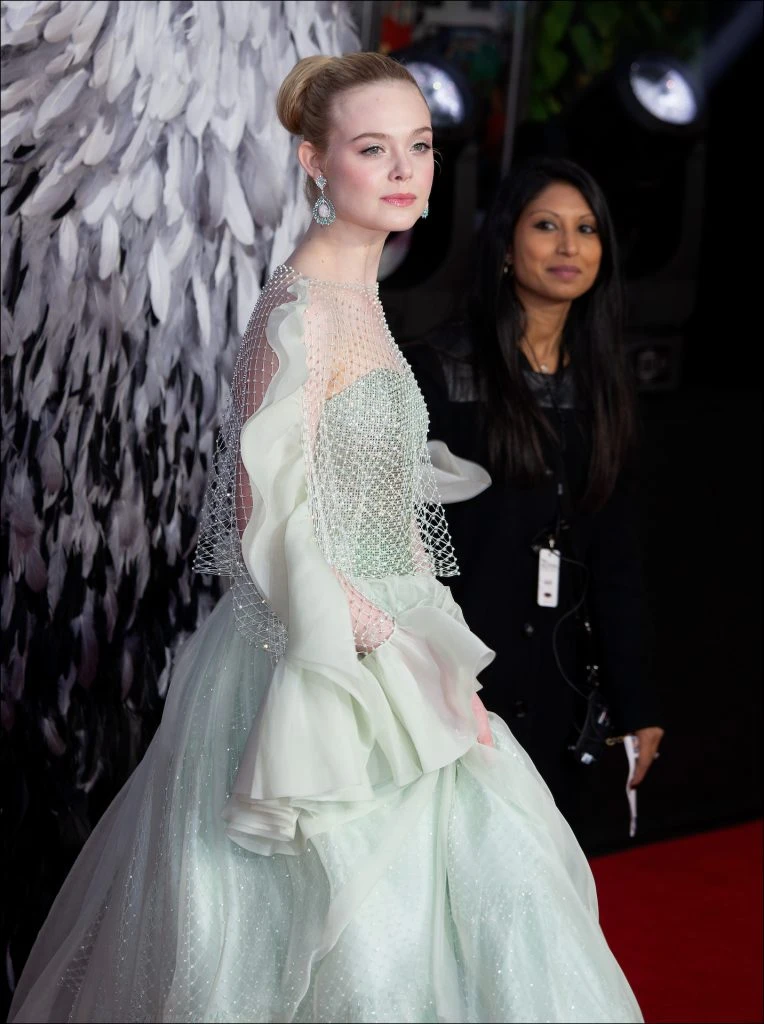Podría ser un vestido que encontramos en el guardarropas de.... ¡Tinker Bell! Elle Fanning, quien interpreta a la bella durmiente, eligió para esta ocasión un diseño de Armani Privé.