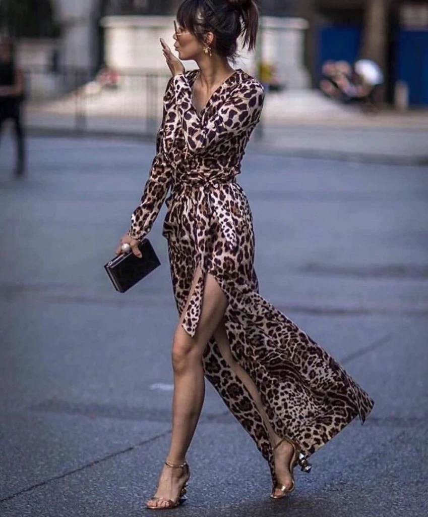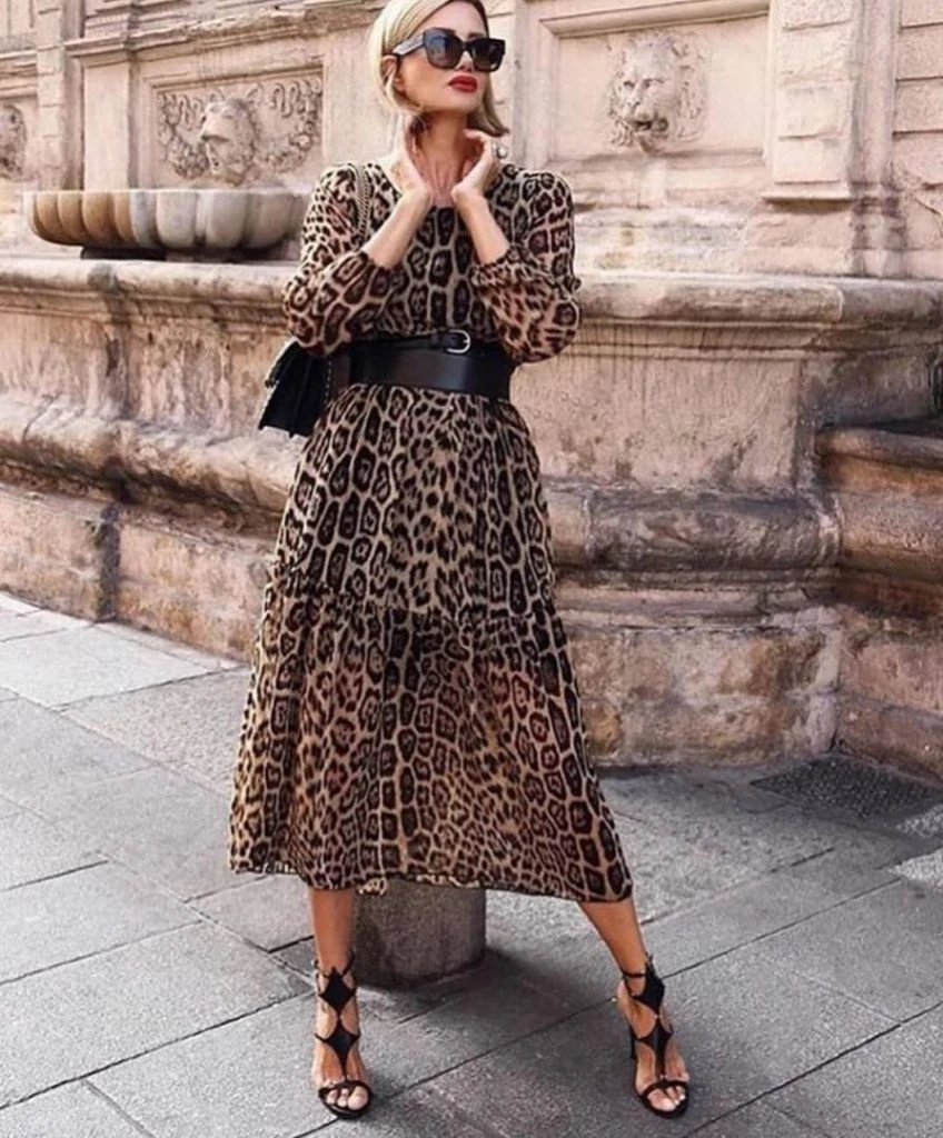 El vestido largo midi con estampa animal print es una prenda que deberían no tenerle miedo las mujeres de 50. Canchero y muy de tendencia, es un ítem de moda que hay que empezar a adoptar. Además, es una prenda que se puede llevar también en otoño. Acá te mostramos otros looks para copiar.