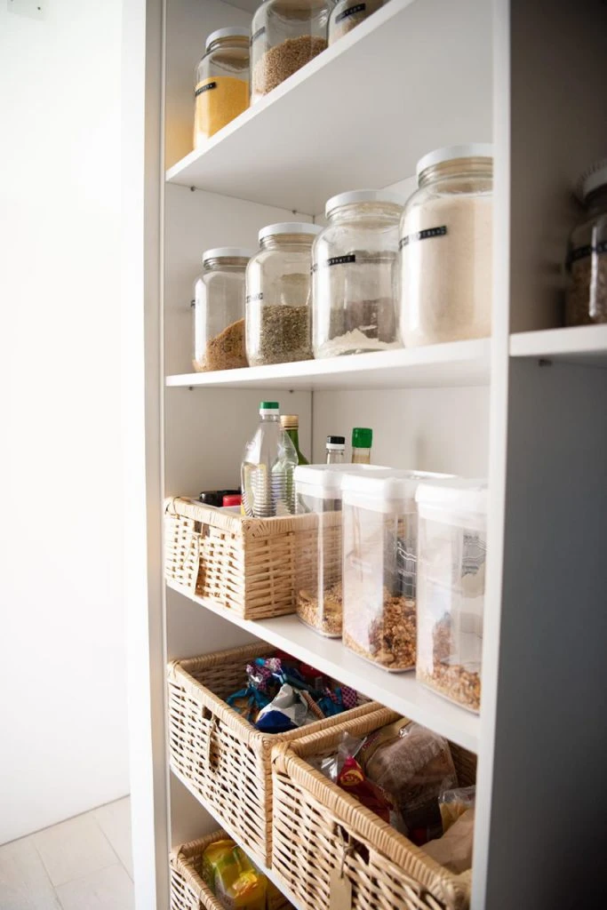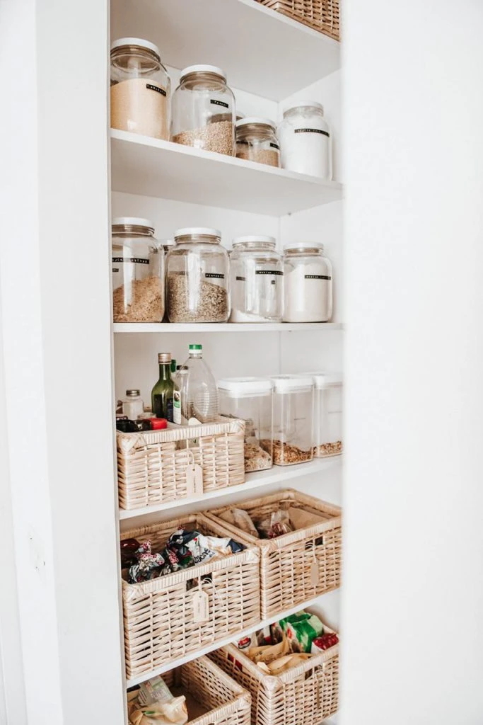 - Contenedores similares mantienen la unidad visual y orden. Elegí de vidrio y de mimbre, más naturales y amables con el medio ambiente que los clásicos plásticos.