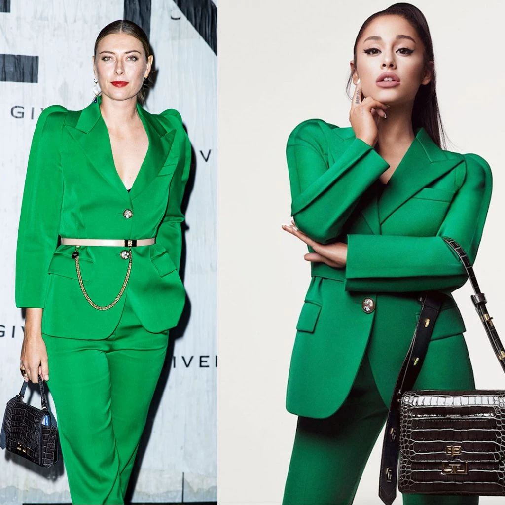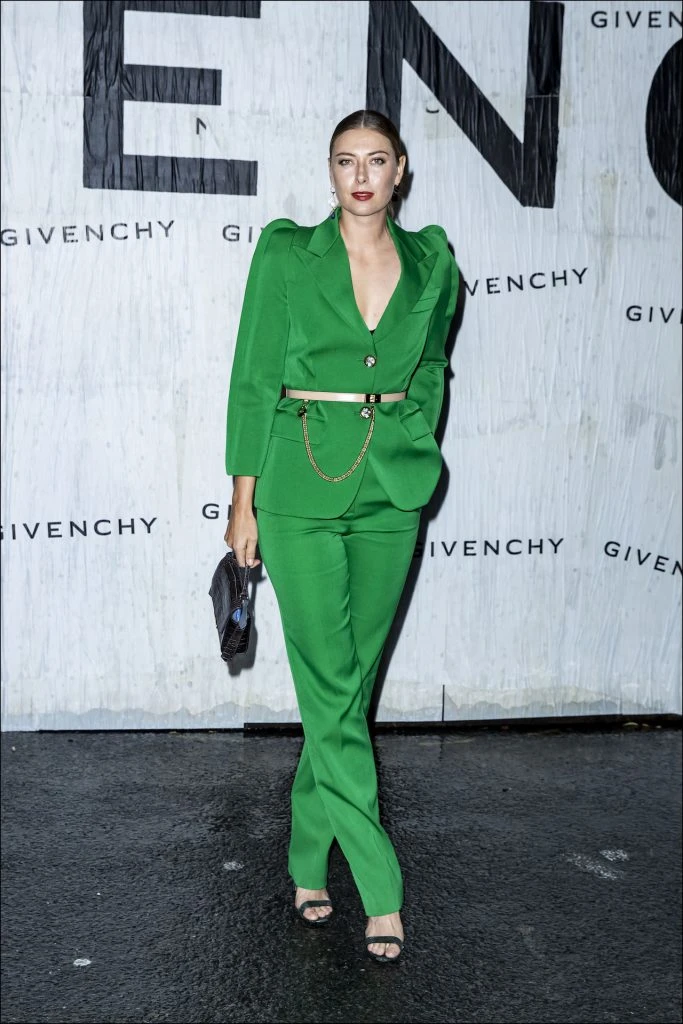Esta vez Sharapova deslumbro llevando un traje verde de la Givenchy. El mismo que usó Ariana Grande para mostrarse como embajadora de la marca de #ARIVENCHY (un juego de palabras entre el nombre de la artista y la firma francesa)