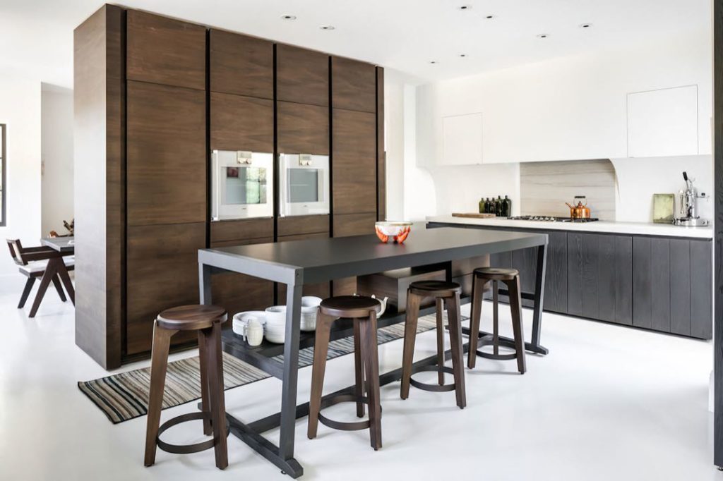 Uno de los espacios más top es la cocina, súper moderna, amplia y de estructura abierta, en la que sobresale una alacena que combina los tonos café, negro y blanco. Está súper equipada con electrodomésticos de alta gama y posee un espacio para un desayunador.
