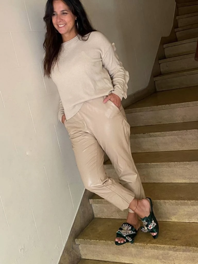 Un buen básico es un pantalón nude, si no tenés uno aún, puede ser tu inversión del invierno. Va con todo y para toda ocasión, no importa la textura, puede ser de cuero ecológico, gabardina o seda.