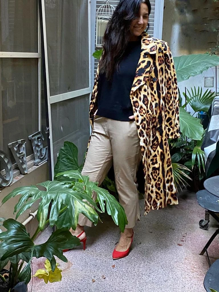 Para un día de oficina, podés combinar el pantalón con un suéter negro y unos zapatos de color. Animáte a un abrigo estampado, en este caso es animal print, para darle un toque diferente al look.