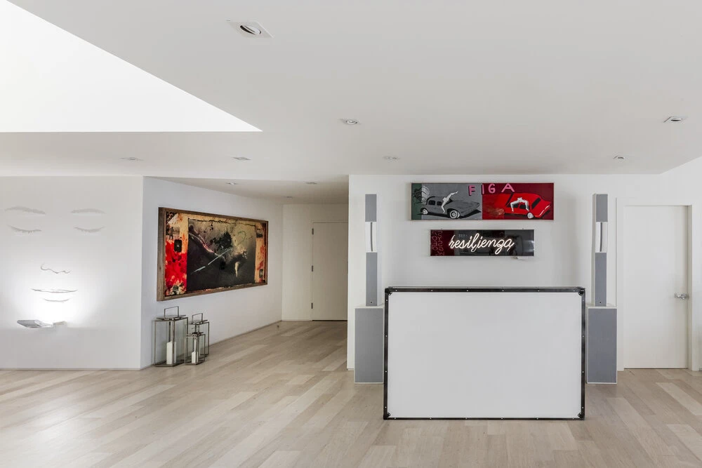 El piso está decorado con estilo minimalista y estética moderna. Ubicado en 1800 Sunset Harbor # TS2, al llegar al salón de estar hay una cabina de DJ donde Vacchi pasa gran parte de su tiempo entreteniendo y mostrando sus movimientos de baile profesionales.