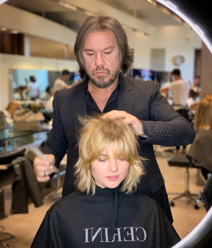 “Tiene los laterales un poco más largos”, aclara el peluquero que se inspiró en una foto de Meg Ryan. “Estaba mirando una revista Vogue francesa y había una nota de Meg Ryan con fotos de todas las épocas. Y me pareció que era una buena propuesta para el verano hacer un corte así”, comenta Cerini.