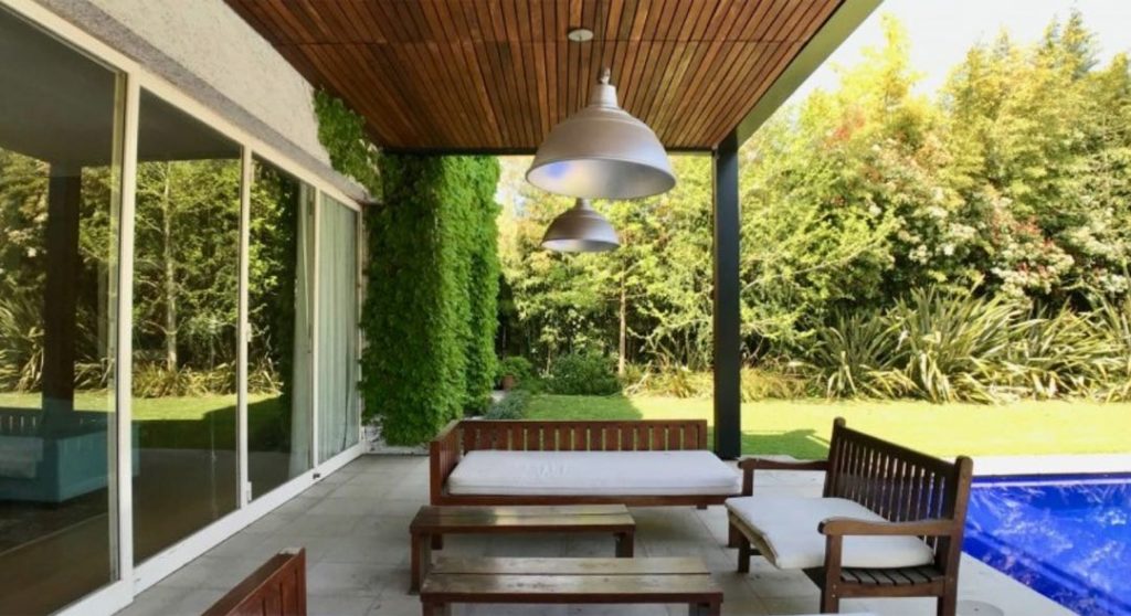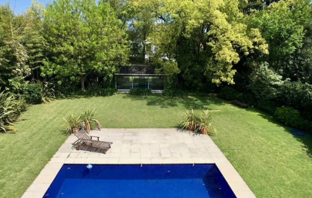 La propiedad tiene 1.000 m2 totales y está rodeada de verde. La propiedad se desarrolló a mediados de la década del 2000 con un concepto moderno para la época. Tiene 540 m2 cubiertos.