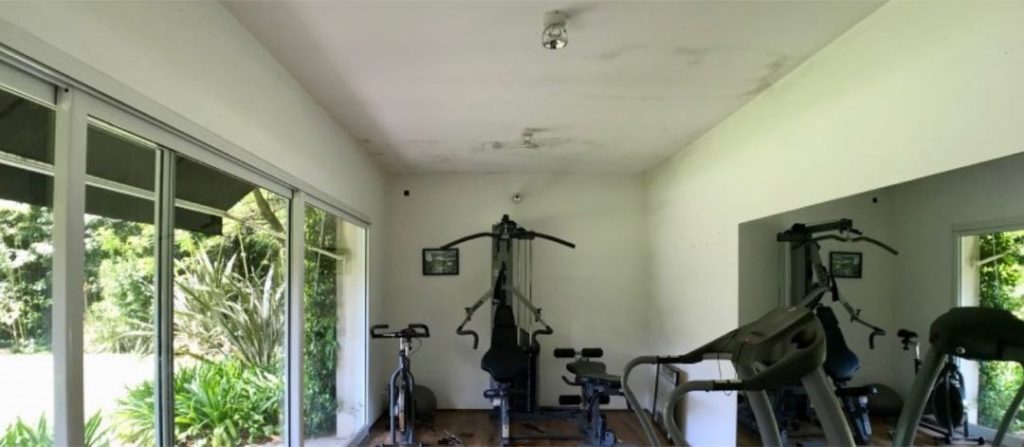 En el fondo del parque, Nico y Flor tienen un gimnasio con cintas para correr, bicicleta fija, mancuernas y aparatos.