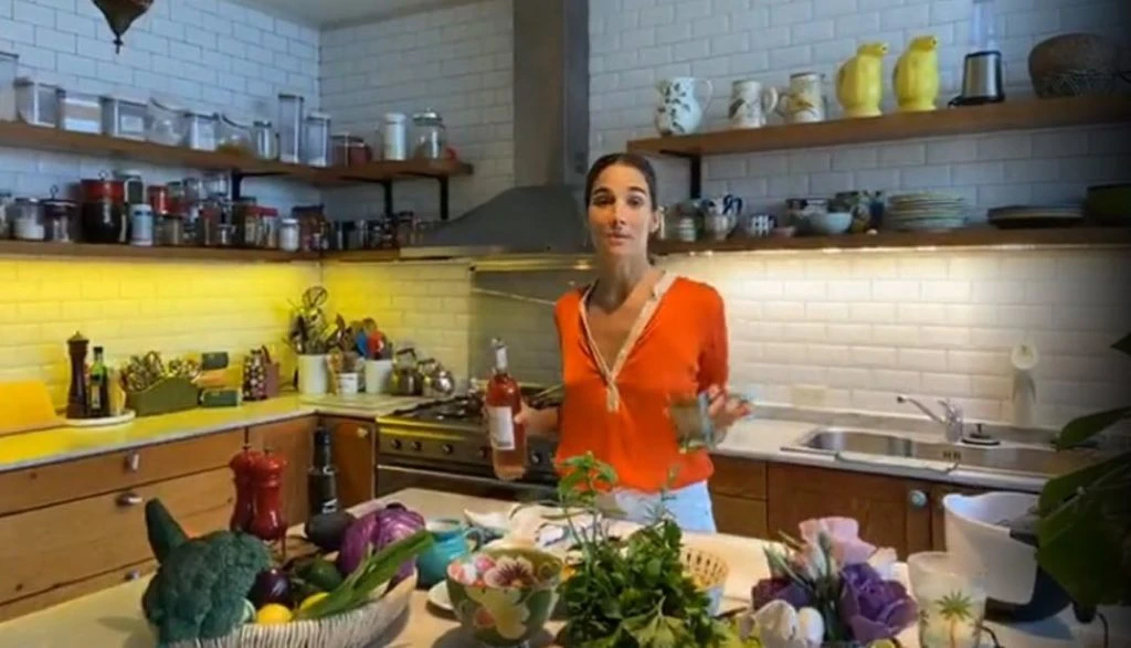 La cocina es su lugar en el mundo y Juana la mostró en varias oportunidades durante la cuarentena. muy amplia y sencilla con azulejos subway, piso damero turquesa, una gran isla central y estantes flotantes de madera con objetos de cocina a la vista. Tiene una cocina de 6 hornallas y doble horno.