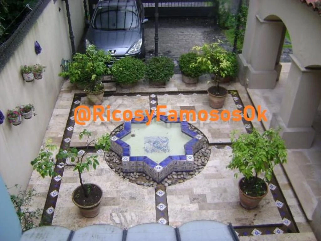 La propiedad tiene una fuente estilo veneciano. Además la casa tiene huerta. Juana Viale cosecha sus propios vegetales.