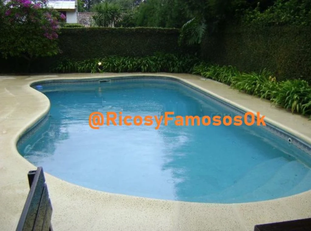 El parque de 300m2 cuenta con piscina, jacuzzi y una edificación aparte con vestuarios, baño, sala de máquinas y una habitación de inspiración donde Juana se relaja.