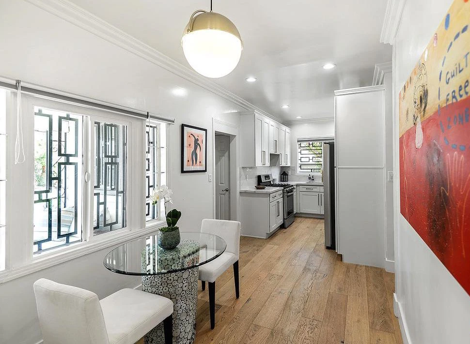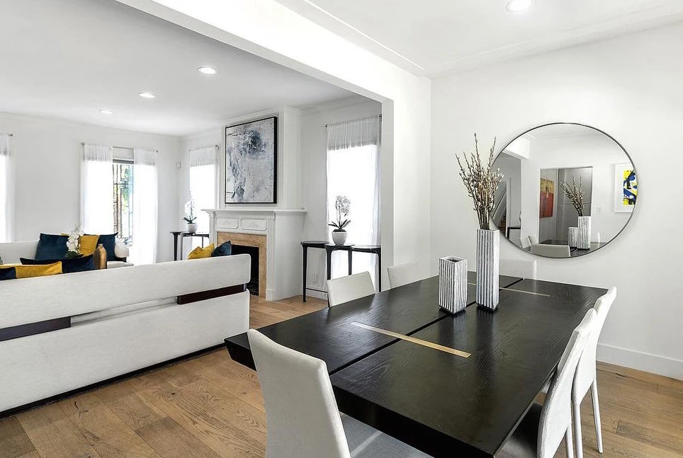 La casa está ubicada en 447 South Highland Avenue, Los Ángeles, y la inmobiliaria la describe así en su página online: “¡Un raro encanto colonial del parque Hancock con tanto sol! Abundante estacionamiento en la calle! Plano de planta abierto abajo increíble para el entretenimiento. Sala de estar con chimenea se abre al comedor y sala familiar. Cocina con desayunador. Cuatro dormitorios llenos de sol y dos baños remodelados arriba. Parque como patio cubierto de hierba con porche, comedor al aire libre, garaje. Amplio, abierto y aireado en una ubicación central increíble. Comprador para verificar pies cuadrados”.