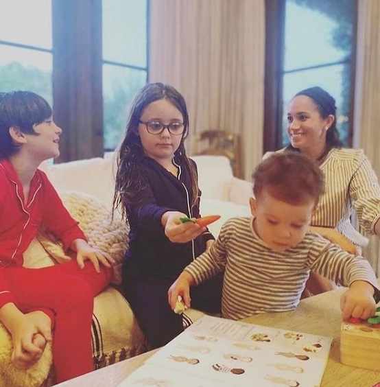 Sorprendió una foto de Archie, entretenido, junto a otros chicos en lo que parece una pijamada. El nene, que se ve muy parecido a su papá cuando era chico, hojea un libro infantil, con su mamá de fondo y muy sonriente.