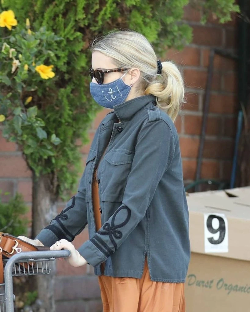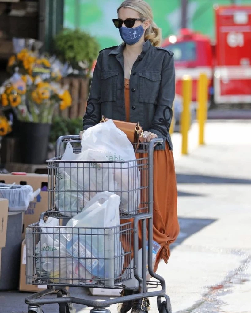Emma Roberts también pasó por el súper. Se vistió con vestido color dulce de leche y detalle de ruedo fruncido.