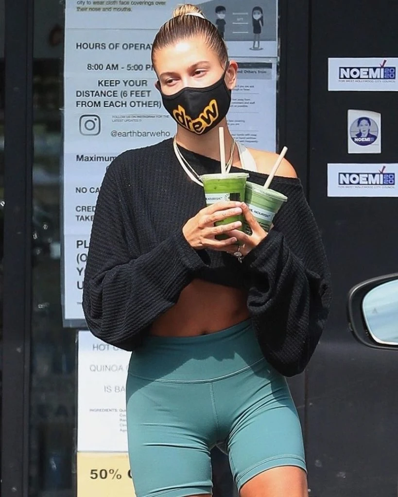 Hailey Bieber adora el estilo deportivo. Salió con leggings cortas, un buzo crop top (última tendencia) y zapatillas negras.