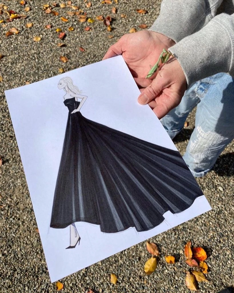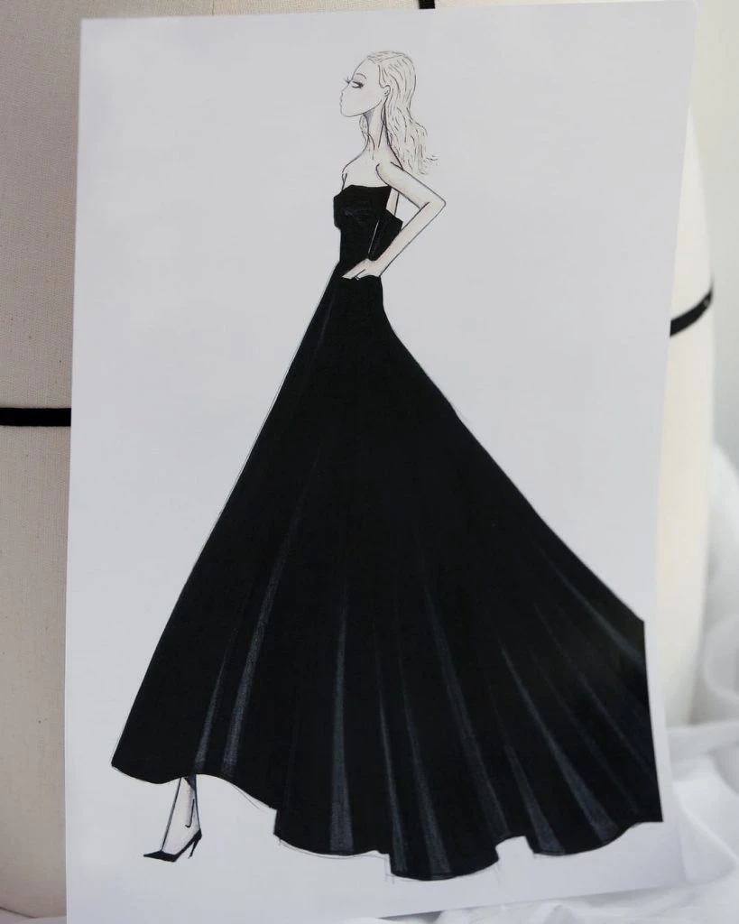Además, compartió una imagen de la previa en pose “shock!!!” (Su Giménez style) más una imagen del boceto de esa delicia de diseño de crepé de seda de lana imaginada para ella por Maria Grazia Chiuri e inspirada en los archivos de Monsieur Dior.