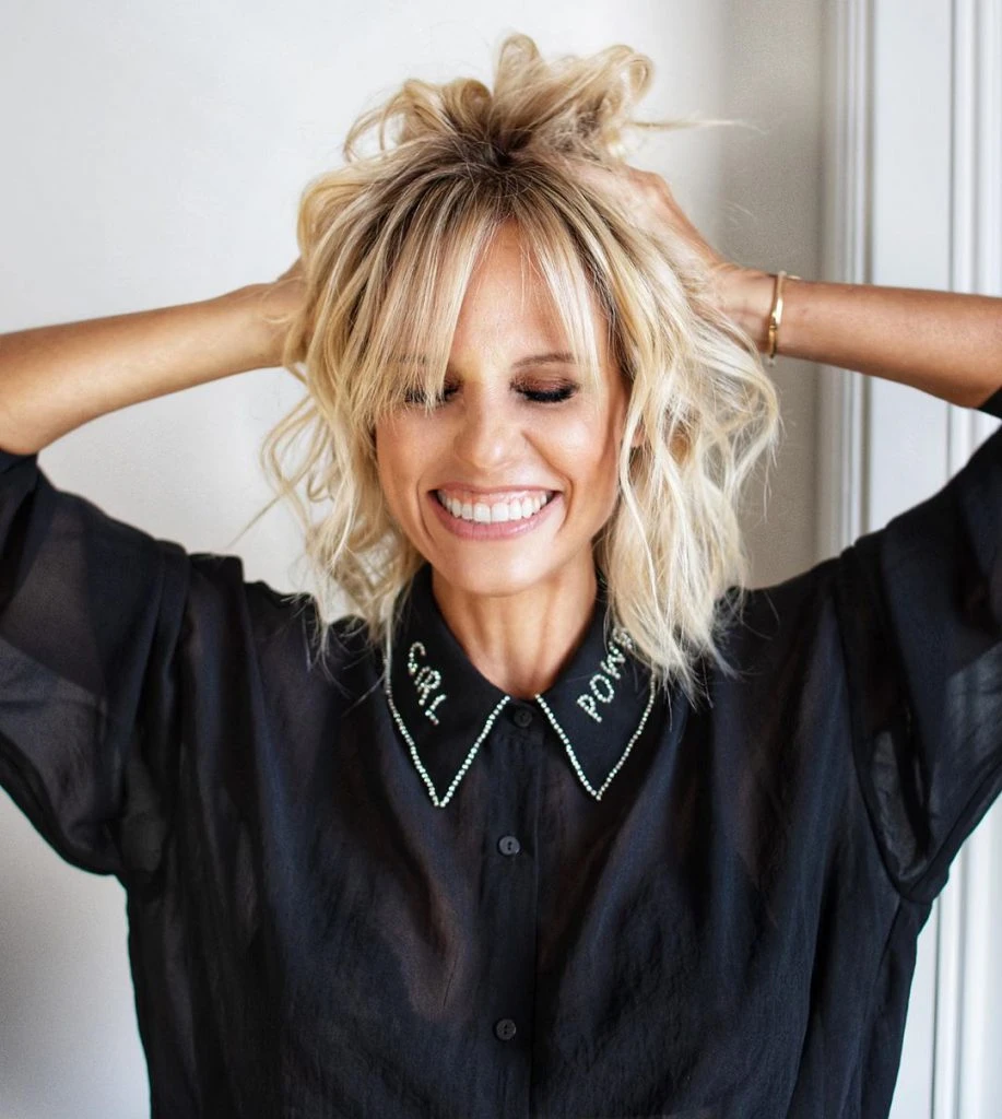 Con una sonrisa de oreja a oreja y agarrándose el pelo, Mariana Fabbiani anunció su regreso a la tele de la mano de Mamushka. Con una camisa negra con transparencias y bordado en el cuello la frase girl power en strass (es de Ginebra), posteó el inminente lanzamiento del programa.