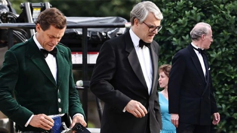 Dominic West y Jonny Lee Miller fueron vistos por primera vez caracterizados como el Príncipe Carlos y el Primer Ministro John Major, respectivamente, durante el rodaje de la quinta temporada de The Crown.