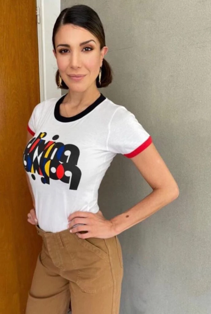 Andrea Rincón nunca deja de sorprendernos con sus outfits: pasa de un vestido -super chic y sofisticado con reminiscencias de los años '50- a un look súper urbano de pantalón capri y remera con estampa.