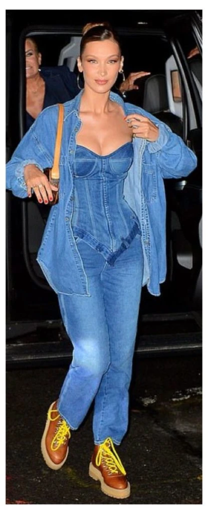 Bella Hadid causó impacto con un total look denim, ¿qué quiere decir esto? Que todas las prendas de su outfit ("total look") eran del mismo material: en este caso, denim.