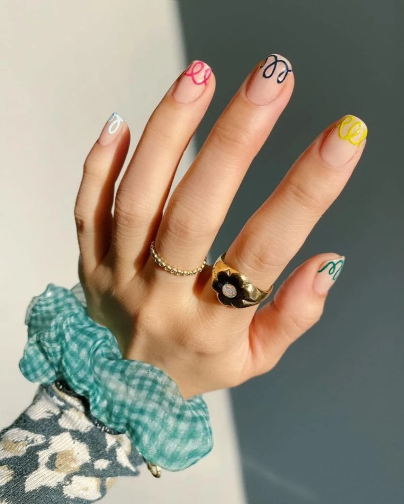 Emojis, espirales, y todo lo que se te ocurra, siempre con un fondo nude o brillo para que se destaque tu diseño.