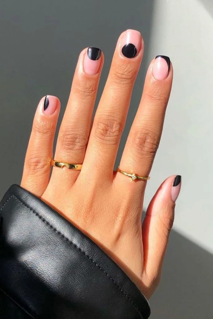 El negro también es muy elegido, aunque a veces puede lucir dramático: podés hacerlo un tanto más delicado usándolo en una francesita, junto con otros diseños en el resto de las uñas que no las abarquen por completo.
