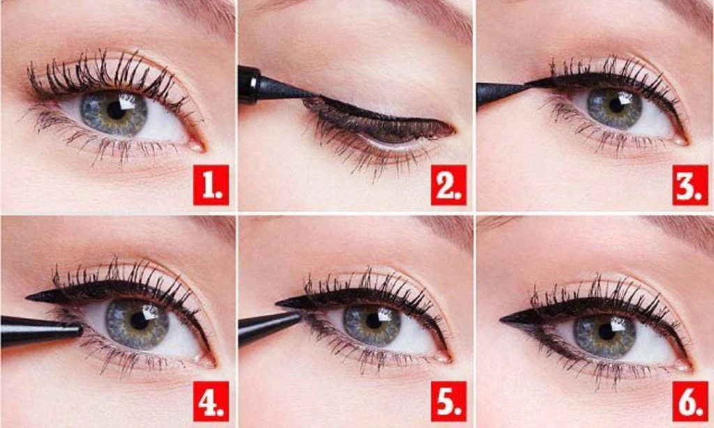 Con un delineador líquido, preferiblemente, realizá un trazo rodeando la línea de nacimiento de las pestañas del párpado superior, partiendo desde el lagrimal hacia afuera.