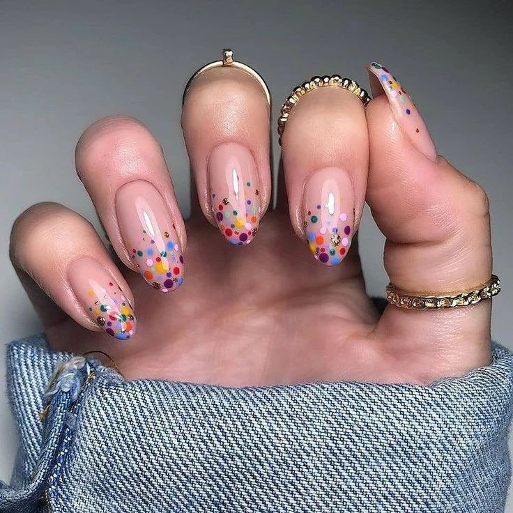 Diseños sobrios, casi siempre partiendo de puntos o de líneas finas, la consigna es realizar un pequeño detalle, casi siempre sobre una base nude, vía láctea o simplemente, con brillo.