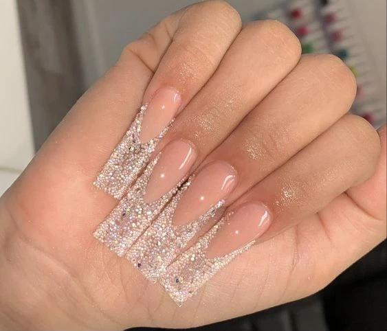 Finalmente, lo brillos en las puntas estilizan la mano, brindando presencia y un destello de glamour a todos los looks.