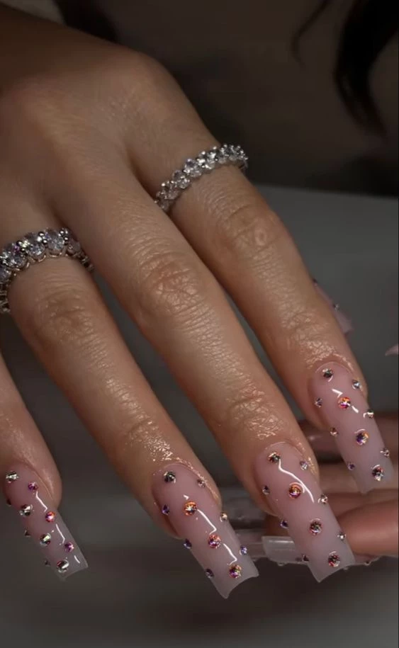Un diseño con pedrería, a puro brillo, para uñas súper llamativas.